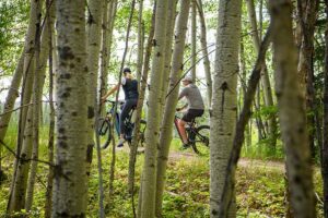Bicycling within an aspen grove